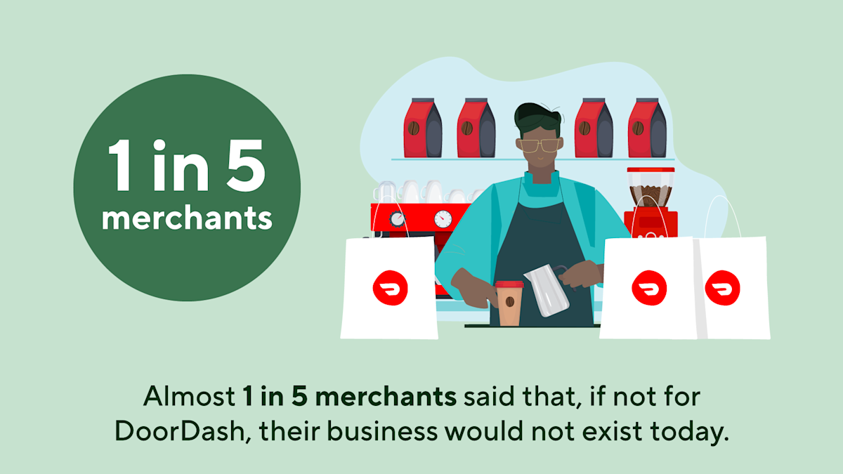 70% of surveyed merchants say DoorDash has helped to increase profits and nearly 1 in 5 independent merchants surveyed said that, if not for DoorDash, their business would not exist today.